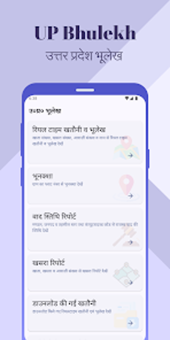 UP Bhulekh Land Infoアプリは、ウッタル・プラデーシュの土地記録へのアクセスを容易にするために設計された無料のAndroidアプリケーションです。ユーザーは、モバイルデバイスから直接、重要な土地所有情報、地図、法的文書を効率的に表示および管理できます。このアプリは、土地所有者、法律専門家、そして不動産の詳細に興味のある人々に特に有益であり、重要なリソースのための集中プラットフォームを提供します。